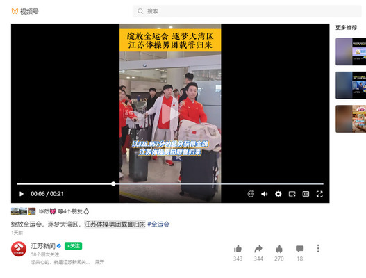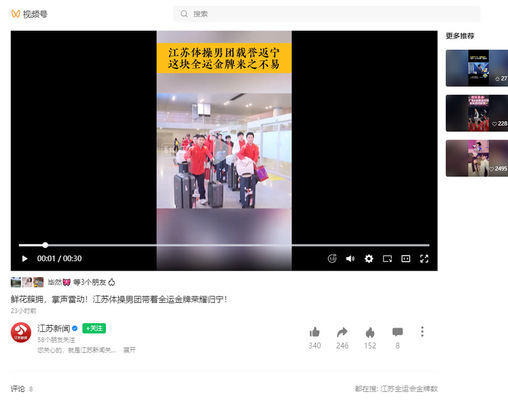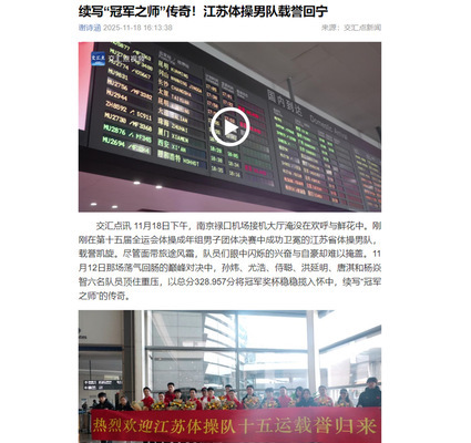 江苏体操队十五运载誉归来 相关报道