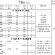 移动套餐资费一览表