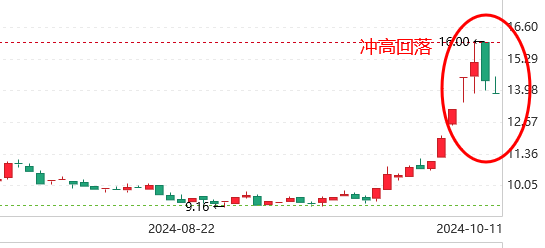冲高回落是指股指或股价在一段时间内涨到一定位置后,趋势发生改变,形成下跌。