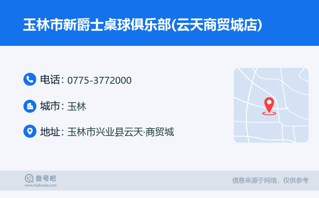 ☎️玉林市新爵士桌球俱乐部(云天商贸城店):0775-3772000 查号吧 ߓ