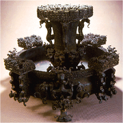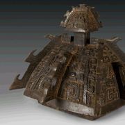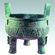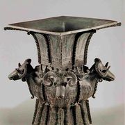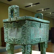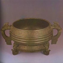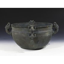流行于春秋晚期至战国时代。此鉴形如大缸,左右两侧兽耳衔环。前后各一小龙攀援器口,作伸头探水状,形象十分生动有趣。器表装饰繁密的交龙纹,内壁铸铭2行12字: 吴王夫差,择厥吉金,自作御监(...