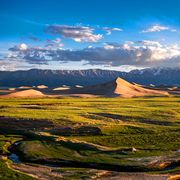天山山脉是亚洲中部最大的一条山脉,横亘中国新疆的中部,西端伸入哈萨克斯坦境内。天山由东西走向的褶皱断块山组成,山间有陷落盆地,如哈密盆地、吐鲁番盆地,西...