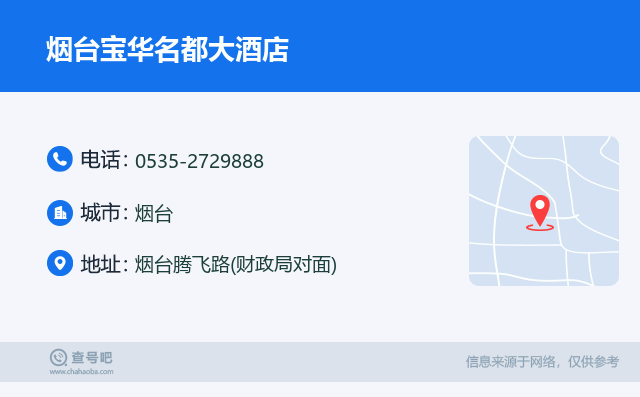☎️烟台宝华名都大酒店:0535-2729888 查号吧 ߓ