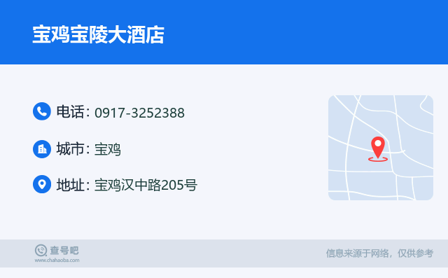 ☎️宝鸡宝陵大酒店:0917-3252388 查号吧 ߓ