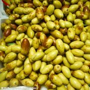 乔木植物枣树,也是枣树的成熟果实。原产于中国,在中国南北各地都有分布。花小多蜜,是一种蜜源植物。果实枣,长圆形,未成熟时黄色,成熟后褐红色。可鲜食也可制成干果或蜜饯果脯等。营养丰富...