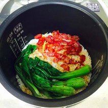 电饭锅煲饭的做法,电饭锅煲饭怎么做请看步骤:1.将油菜洗净沸水焯一下。挤干水份。在这同时将电饭锅内放大米香肠。加比做大米饭多一点点的水。开始煮饭2.将油菜加入盐鸡精糖酱油麻辣鲜胡...