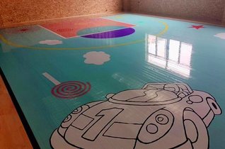 市室内篮球场规划了两块场地 采用的是4.5mm专业定制地胶 另一块成人篮球场 主场采用枫木纹4.5mm地胶 八 +00 缓冲区则采用黑色地胶搭配 整体效果和装修配色也很协调 e 希扬体育运动中心 举...