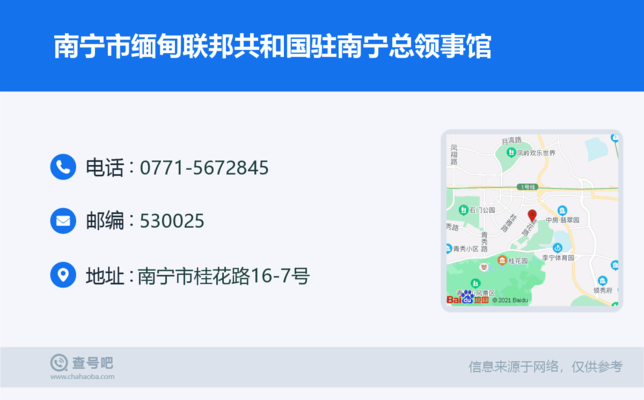 ☎️南宁市缅甸联邦共和国驻南宁总领事馆:0771-5672845 查号吧 ߓ