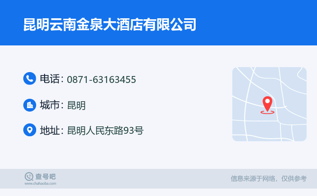 ☎️昆明云南金泉大酒店有限公司:0871-63163455 查号吧 ߓ