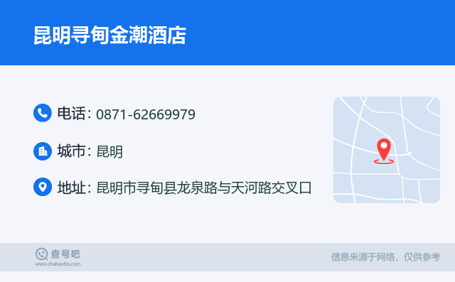 ☎️昆明寻甸金潮酒店:0871-62669979 查号吧 ߓ