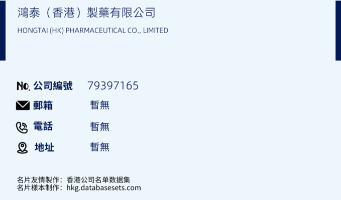 鴻泰(香港)製藥有限公司是一家香港公司,商業登記號碼為79397165,該頁面展示了鴻泰(香港)製藥有限公司的中文名稱、英文名稱、注冊編號、商業登記號、成立日期、改名日期、公司狀態、變更...