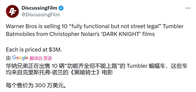 兄弟将推蝙蝠侠战车:售299万美元,仅限10辆,6.2升V8引擎、525马力| ...