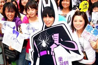 蜘蛛超人装 ,萧敬腾只要把脸靠上去,就可以完全不用摆任何p...