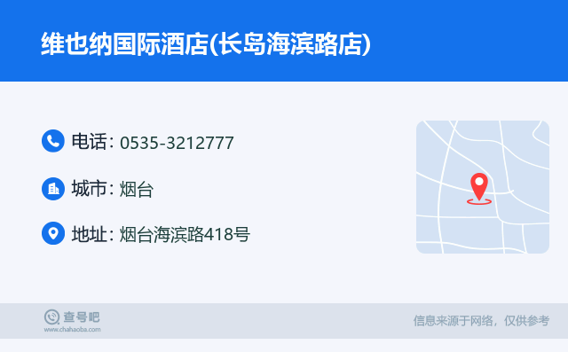 ☎️维也纳国际酒店(长岛海滨路店):0535-3212777 查号吧 ߓ