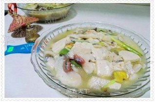- 1.鱼切片,鱼头剖两半,生姜拍烂放入鱼中,加入干淀粉调均匀;大葱切段,豆腐切块,蒜切片。