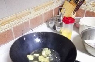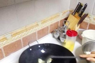 - 3.再入大葱段,翻一下。