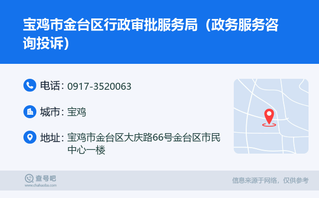 ☎️宝鸡市金台区行政审批服务局(政务服务咨询投诉):0917-3520063 查号...