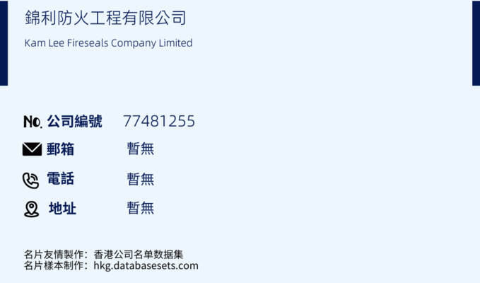 锦利防火工程有限公司(商业登记号码: 77481255) 新成立/注册及已更改名称...