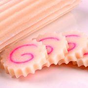 鱼板好吃 一切准备妥当 等时间一到 将粉红色的鱼泥转移出来 先将冷冻的鱼浆 分别倒入相应的挤压机里 随后一条彩色的鱼糕 便从出口处被挤压出来 6 鱼板各种好看的图案 还会采用特制的模具塑...