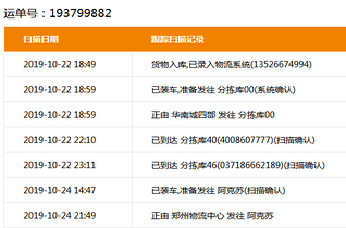 [最佳答案] 鸿泰物流 官网 400-8607777 时间地点和跟踪进度 2019.12.29 18:26 星期天 正由 郑州物流中心 发往 乌市华凌 2019.12.2915:54 星期天 已装车,准备发往 乌市华凌(扫描确认) 2019.12.2619:29 已到达 分拣库46(037186662189)(扫描确认) 2019.12.2617:27 已到达 分拣库40(4008607777)(扫描确认) 2019.12.2607:46 正由 泌阳 发往 郑州物流中心 2019.12.2607:46 星期四 已装车,准备发往 郑州物流中心(系统确认) 2019.12.2513:19 星期三 货物入库,已录入物流系统