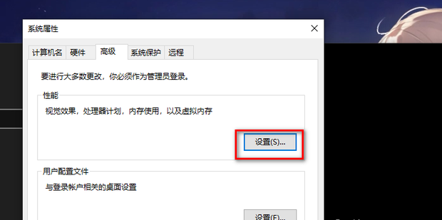- 3. 第二步进去之后,点击性能的设置,如下图所示: