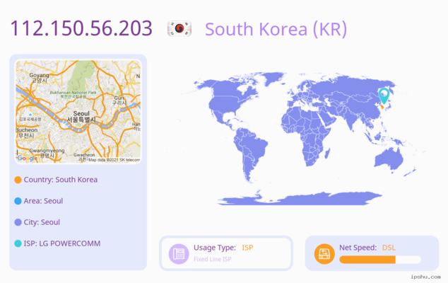 112.150.56.238 is an external IP address, this IP address represents a device on the Internet. We ... home networking devices usually use private IP and connect to public IP on the Internet through a ro...