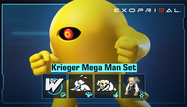 Kriegerin Mega Man ‑sarja - Yellow Devil (Krieger: eksopuvun ulkoasu) - Wily Logo (tarra) - Grovel (emote) - Forgive me! (leima) - Dr. Wily (riipus) Huomautus: Tähän sarjaan kuuluvat tuotteet saat...