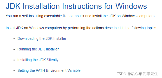 Java安装官方文档地址: https://docs.oracle.com/javase/10/install/installation-jdk-and-jre-microsoft-windows-platforms.htm ,这里列出了安装所需进行的步骤:安装 配置环境变量。 Java结构说明官网地...