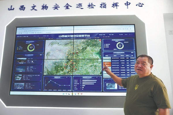 the Shanxi Cultural Relics Safety Command Center, hundreds of kilometers away, monitors real-time data. Giant screens map more than 1,300 sites via 1,211 cameras and 595 sensors. This is desc...