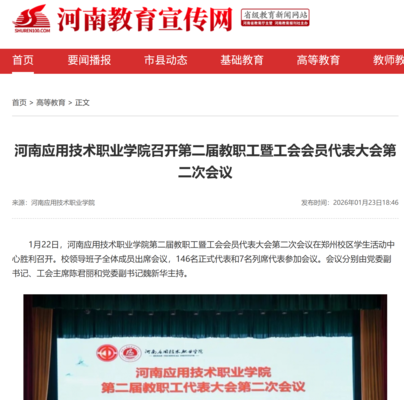 河南教育宣传网、顶端新闻:河南应用技术职业学院召开第二届教职工暨...