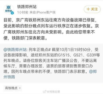 郑州东站部分列车晚点,官方:因设备故障,列车陆续恢复