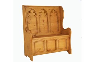n.高背长椅(常为木制扶手椅,座下多带有储物柜)