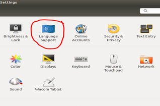 Ubuntu中文设置方法: 1.首先打开Ubuntu Setting(设置),点击右上角的三角,然后点击扳手图标;或者点击左下角,在右面找到设置,如下图所示(两种方式合一截图,都能打开设置)。 2.然后在settings对话框...